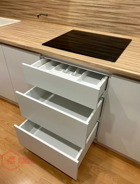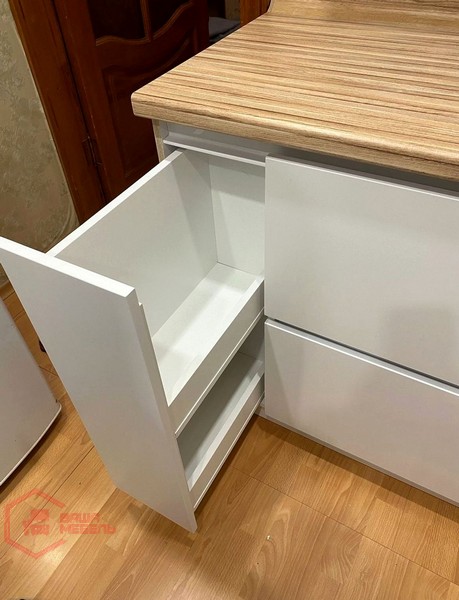 Кухонный гарнитур удобен в использовании – имеет большое количество отделений для вертикального и горизонтального хранения кухонной утвари и различных принадлежностей. Качество отделки и фурнитуры позволит вам оценить эту мебель по достоинству.