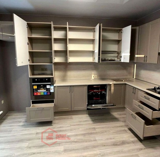 Кухонный гарнитур удобен в использовании – имеет большое количество отделений для вертикального и горизонтального хранения кухонной утвари и различных принадлежностей. Качество отделки и фурнитуры позволит вам оценить эту мебель по достоинству.