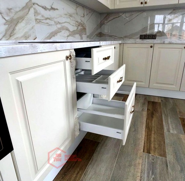 Кухонный гарнитур удобен в использовании – имеет большое количество отделений для вертикального и горизонтального хранения кухонной утвари и различных принадлежностей. Качество отделки и фурнитуры позволит вам оценить эту мебель по достоинству.