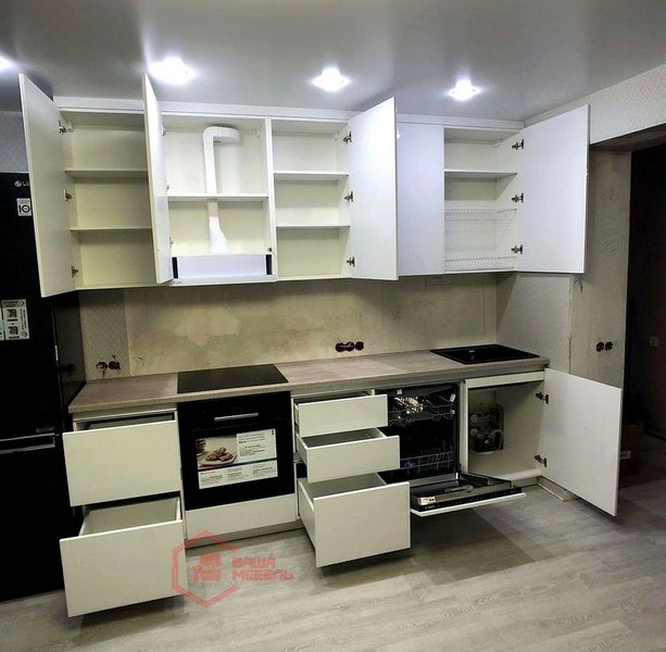 Кухонный гарнитур удобен в использовании – имеет большое количество отделений для вертикального и горизонтального хранения кухонной утвари и различных принадлежностей. Качество отделки и фурнитуры позволит вам оценить эту мебель по достоинству.