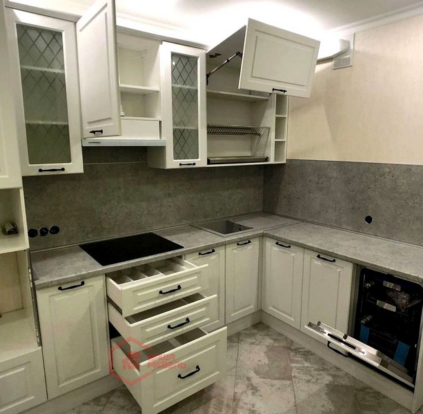Кухонный гарнитур удобен в использовании – имеет большое количество отделений для вертикального и горизонтального хранения кухонной утвари и различных принадлежностей. Качество отделки и фурнитуры позволит вам оценить эту мебель по достоинству.